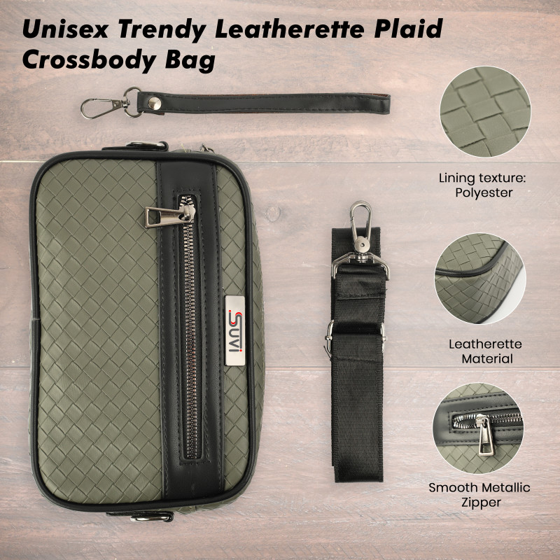 Turn heads with this Men's Woven PU Leather Crossbody Bag, a perfect blend of street fashion and everyday function. Designed with a stylish plaid weave pattern and available in grey, black, or green, this breathable PU leather bag adds a bold, urban edge to your look. Whether you're out with friends or on the move around the city, its multifunctional compartments make it easy to carry all your essentials—phone, wallet, keys, and more.